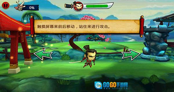 3、接着直接点击主界面的开始按钮,首次游玩的玩家会看到新手提示,需要通过触摸屏幕来操控角色进行前后移动
