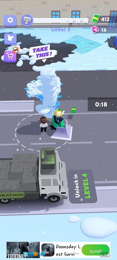 2、每一关你都会接到不同的清洁任务,比如清理冰块、木屑、砖块等各类材质的垃圾。