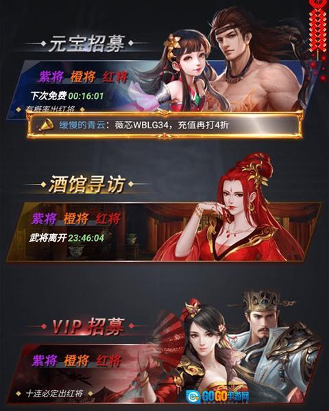 3、多样的武将培养体系:游戏内汇聚了大量三国时代的知名武将,每个武将都具备专属的技能与成长轨迹。玩家能够借助招募、培育武将,构建属于自己的顶级阵容。并且,游戏还设置了多种培养途径,像装备强化、技能习得、武将晋升等,使得玩家可以依据自身的偏好和策略来塑造与众不同的武将队伍。