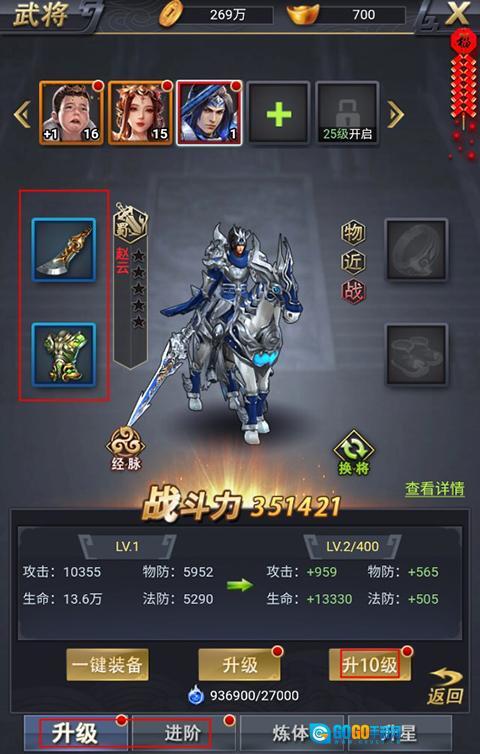 3、当玩家获取到足够的资源后,便能够对武将展开培养与提升。具体可通过为武将穿戴装备、进行等级提升、完成进阶操作、开展炼体以及提升星级等多种方式,来显著增强武将的战斗能力。