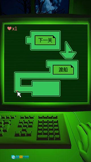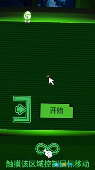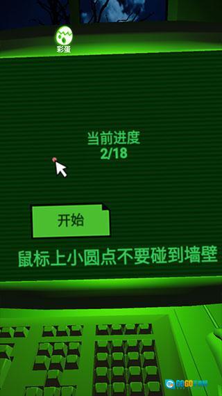 4、画面呈现的是坐在电脑前玩游戏的场景,需将鼠标光标移动到【开始】按钮上以开启下一关,要留意鼠标上的小圆点不能碰到墙壁,否则会触发恐怖机制。