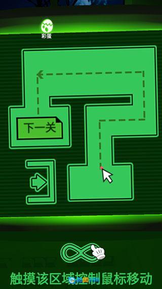 3、移动鼠标光标穿越迷宫,出口处标注着【下一关】,迷宫通往的终点提供了不同的选项,且存在多条可行的通道。