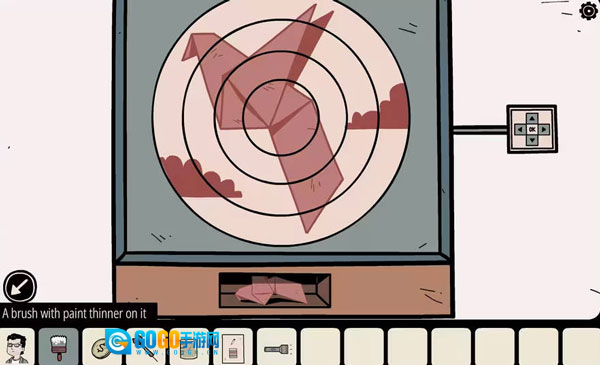 6、你回到牢房,将千纸鹤放进鸟笼,它随即叼出一片显微镜切片。用显微镜观察这片切片,调整好焦距后,你会看到一个精致的宝箱,还有一串斜向排列的箭头。现在你能解开牢房里那个类似的装置了——装置上有个热带鱼拼图,按照旁边的模板拼好,就能得到一条纸鱼。把纸鱼放进鱼缸,鱼会叼出一个阀门开关。