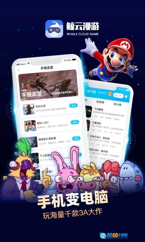 无需:鲸云漫游采用云技术,用户无需游戏,只需通过云端进行游戏,节省了用户的存储空间。