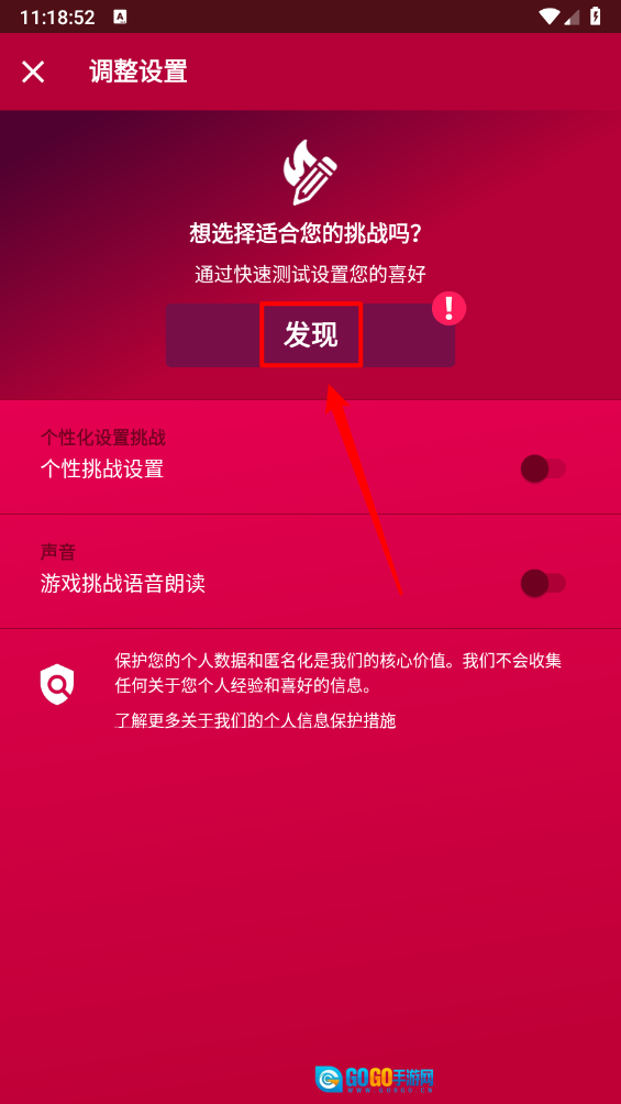 2、如图所示,点击“发现”按钮进入后,可借助快速测试功能来设置您的偏好。