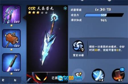3、天晶苦无 从名字就能看出这是忍者使用的武器,它具备十分强劲的范围伤害能力,释放冰爆术时甚至能一次性清空整个屏幕的敌人。