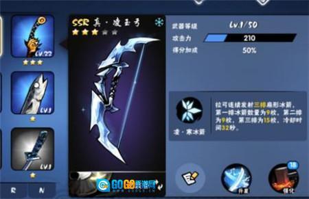 7、真·凌玉弓 该武器的范围伤害极为出色,能够连续发射三排呈扇形分布的冰剑,且每一排的冰剑数量会依次递增。