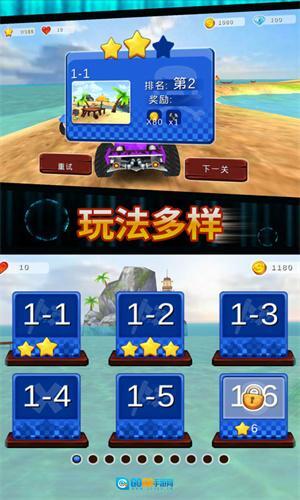 3.凭借顶级的游戏驾驶技巧完成一系列操作,顺利闯过重重关卡,战胜所有对手。