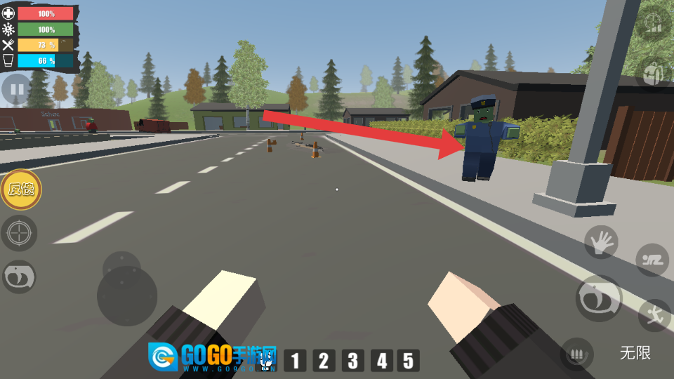 2、在探索途中遇到僵尸敌人时,如果还没拿到武器,可以借助场景里的树木、岩石之类的障碍物和僵尸周旋,伺机绕到安全的地方。