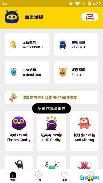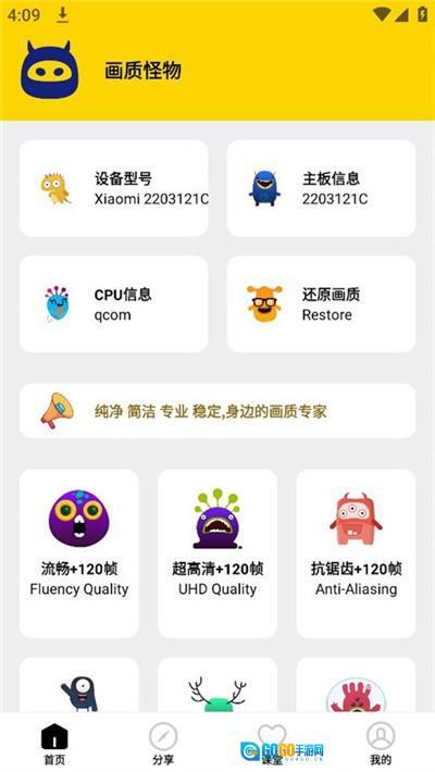 画质怪物是一款画质修改游戏,支持120帧率极致画质,简单配置即可畅享,体验流畅、自由度高,抗锯齿可拉满,不论啥手机都能流畅游戏,超小内存获无数玩家好评。支持修改游戏画面,能一键速查手机型号、型号,包括主板、cpu信息,可分享。有需要的玩家快来体验。