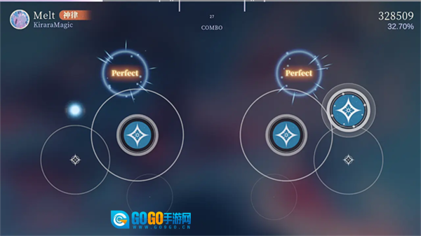 2、游戏采用四面+空间下落式节奏玩法,玩家需点击下落的音块