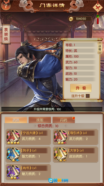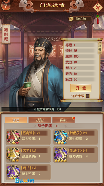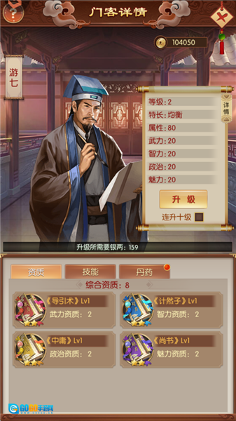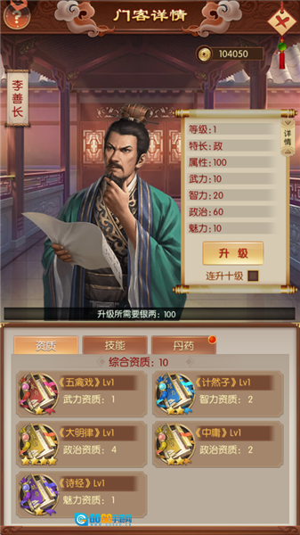 门客的核心数值会随等级提升而增强,等级越高,资质所带来的属性加成效果就越显著。而门客的资质,则是通过武、智、政、魅这四类书籍来提升的。