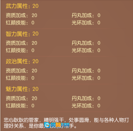 门客的属性加成对势力而言,是其核心构成要素。这些属性可划分为武、智、政、魅四类,每一类属性都能通过资质、丹丸、红颜以及光环这几个方面来获得加成。
