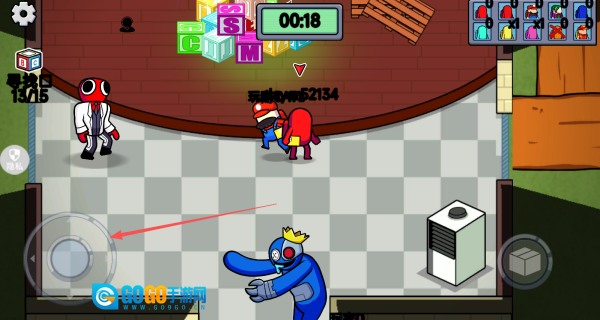 进入游戏后,通过滑动虚拟摇杆,来操控角色在地图里移动。