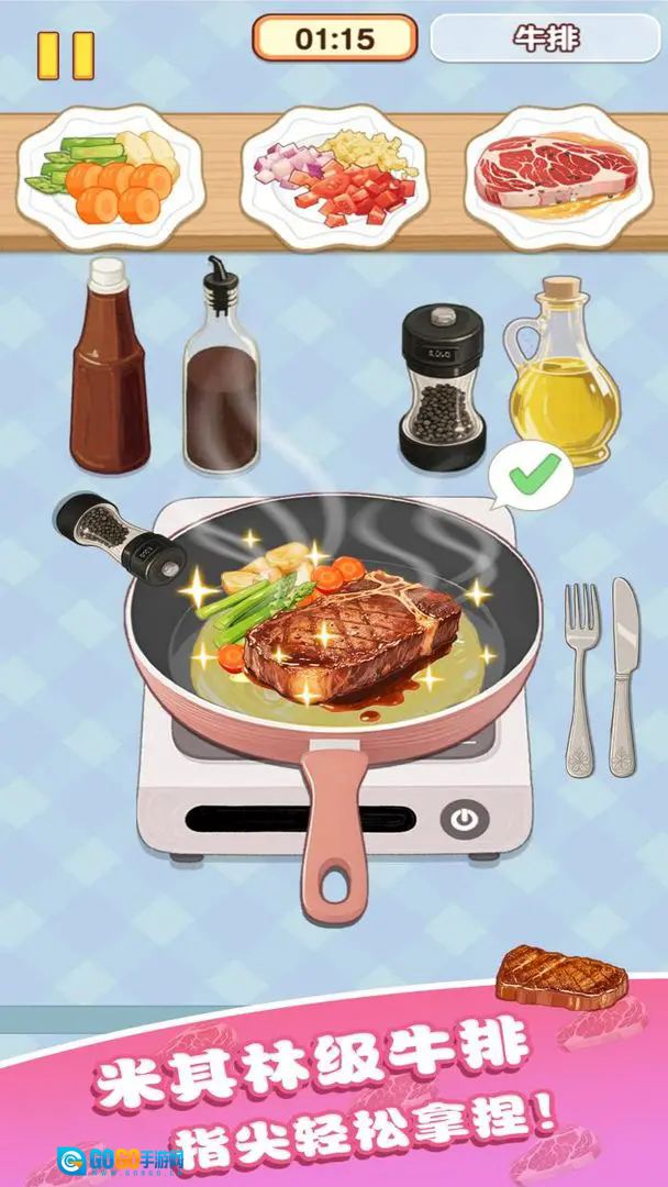 1、难度循序渐进:初期从煎蛋、炒饭这类简单料理入手,操作步骤少,容错空间大;随着玩家熟练度的提升,后期会逐步解锁烘焙蛋糕、炖制高汤等复杂料理,难度也随之增加。