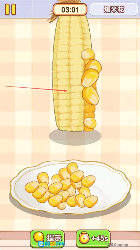 2、在指定时间内,点击玉米把玉米粒剥进盘子里,得加快速度别让时间用完了。