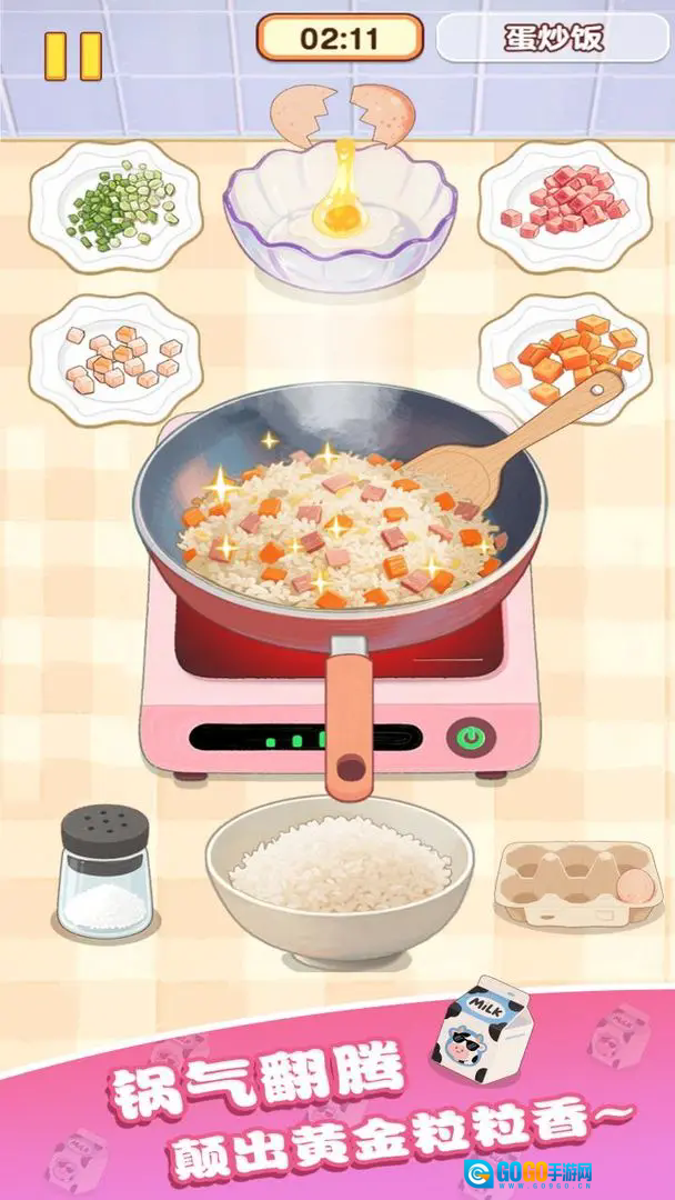 2、个性化料理创新:当玩家熟练掌握基础食谱后,便能够自由调整各类食材的搭配比例,或者根据自己的想法添加具有特色的配料。举例来说,在制作炒饭时加入菠萝,就能做出别具风味的甜味炒饭。这类创新的料理往往能够收获额外的好评,从而进一步激发玩家的创作热情与欲望。