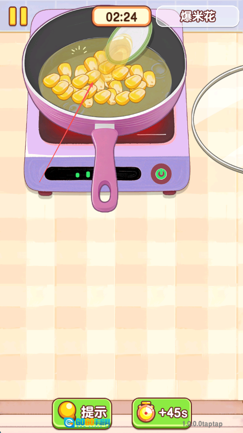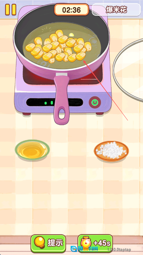 4、按照提示,在合适的时机加入油等所需材料,完成爆米花的制作流程,即可顺利通过该关卡。