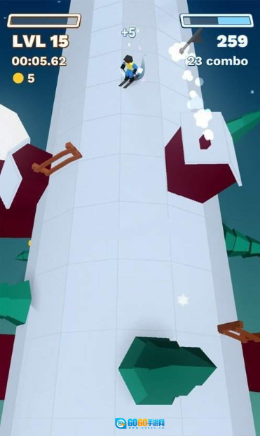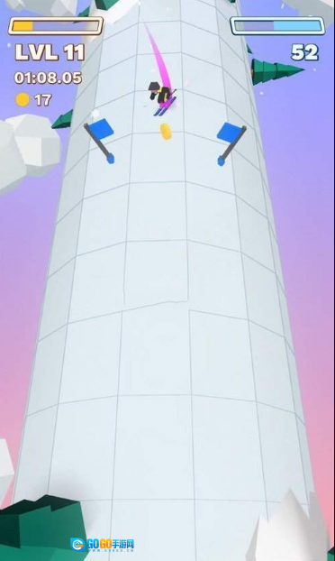 3、收集关卡中的道具和装备,挑战不同的滑雪地图;