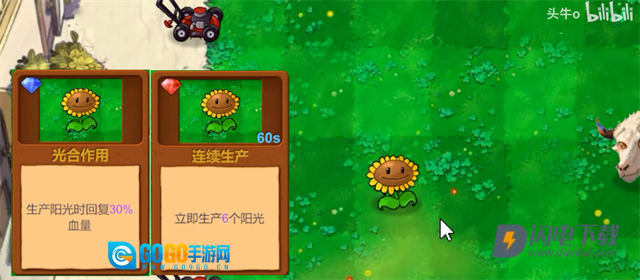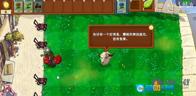 4、牛头为我们送来了几株向日葵,帮助维持阳光的持续产出。之后的游戏玩法比较简单,还请牛头帮你一把,顺利通过关卡。
