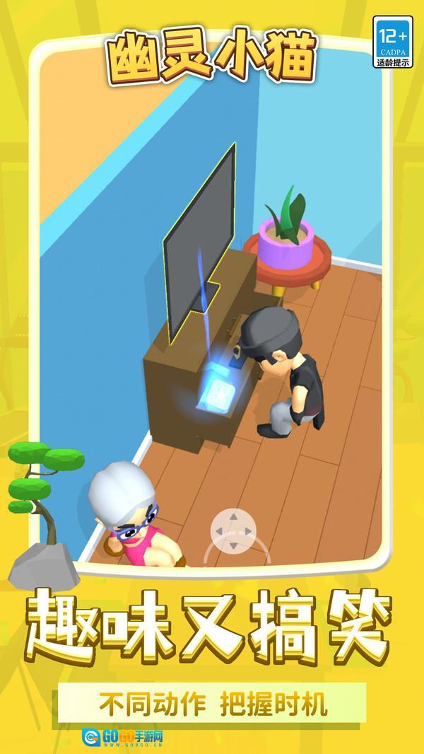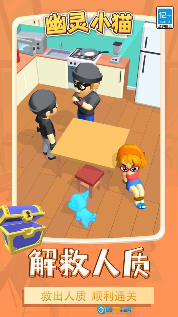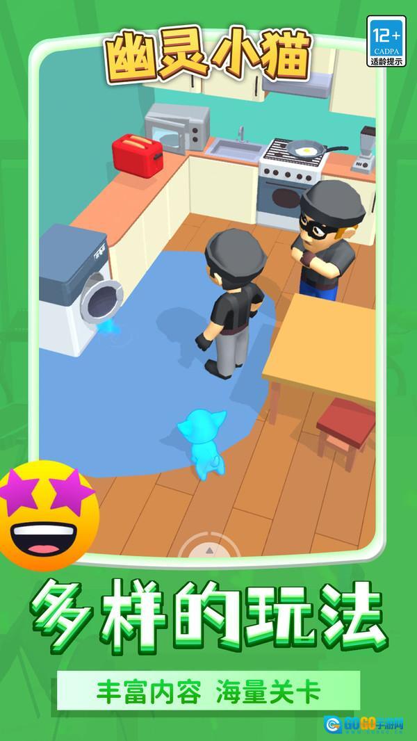 1、萌趣角色设计:主角幽灵小猫的形象呆萌讨喜,漂浮移动时拖着小尾巴的特效格外治愈,还能依据不同操作呈现出丰富逗趣的表情反应。