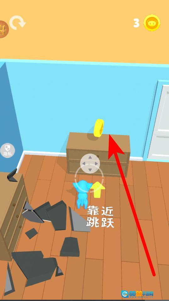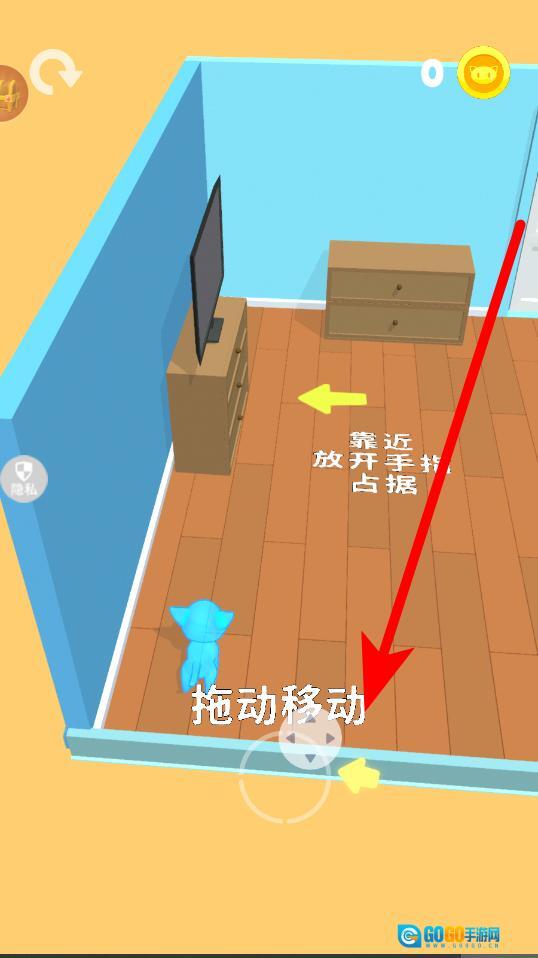 2、接着执行移动操作,通过拖动对应的控制区域,操控角色在场景里移动,到达不同位置,为附身于家具、电视等后续操作做好准备。