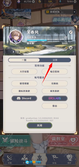 2.进入新页面后,点击设置选项以切换页面。