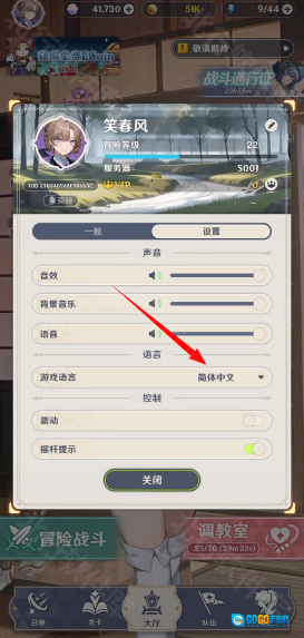 3.最后,点击语言设置,将其调整为简体中文。