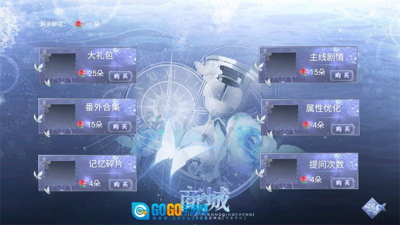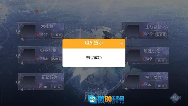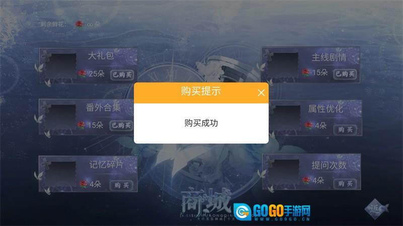 3、由于本游戏已经成功无限鲜花,我们可以打开鲜花商城直接购买大礼包、番外合集、主线剧情等物品。
