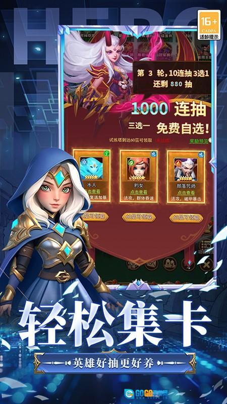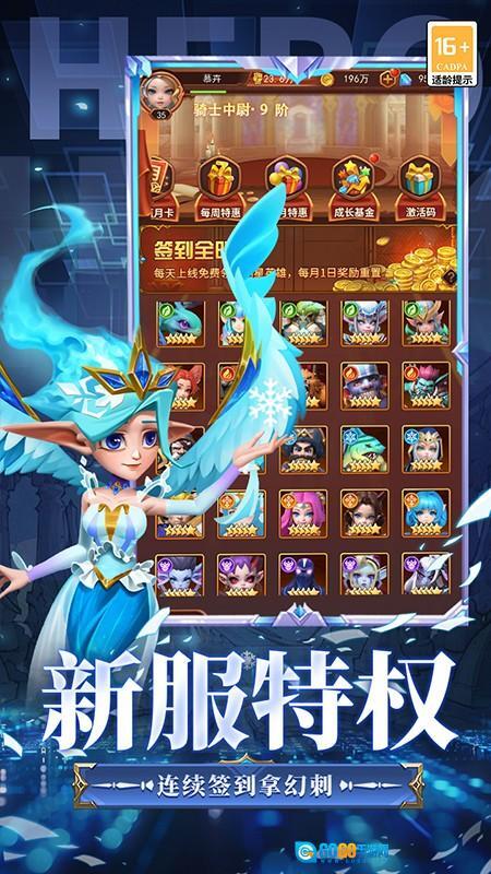 1、福利体系丰厚:登录就送VIP6、大量钻石和5星英雄,升级可获得千抽自选武将,首充、任务还能拿到限定高星英雄,帮助玩家快速组建强力阵容。