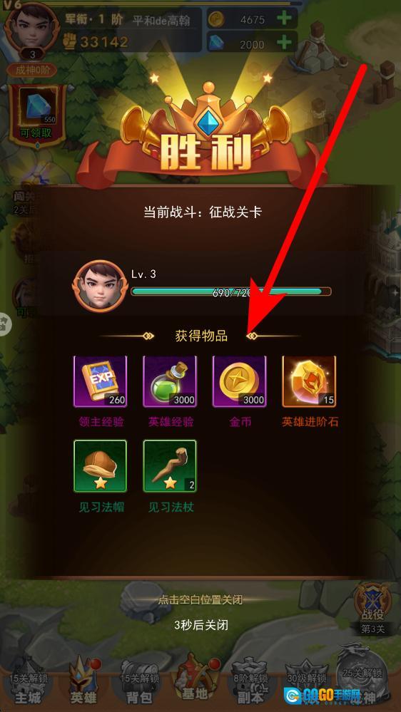 3、完成闯关战斗并取得胜利后,可领取领主经验、英雄经验、金币等丰厚奖励,这些奖励可用于提升领主等级、增强英雄实力、强化阵容配置,从而为后续的挑战提前做好充分准备。
