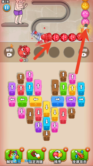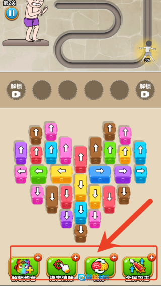 2、借助消除产生的资源来搭建炮台,炮台会主动攻击电钻,不过它的攻击方向十分“随机”,能带来满满的搞笑感。