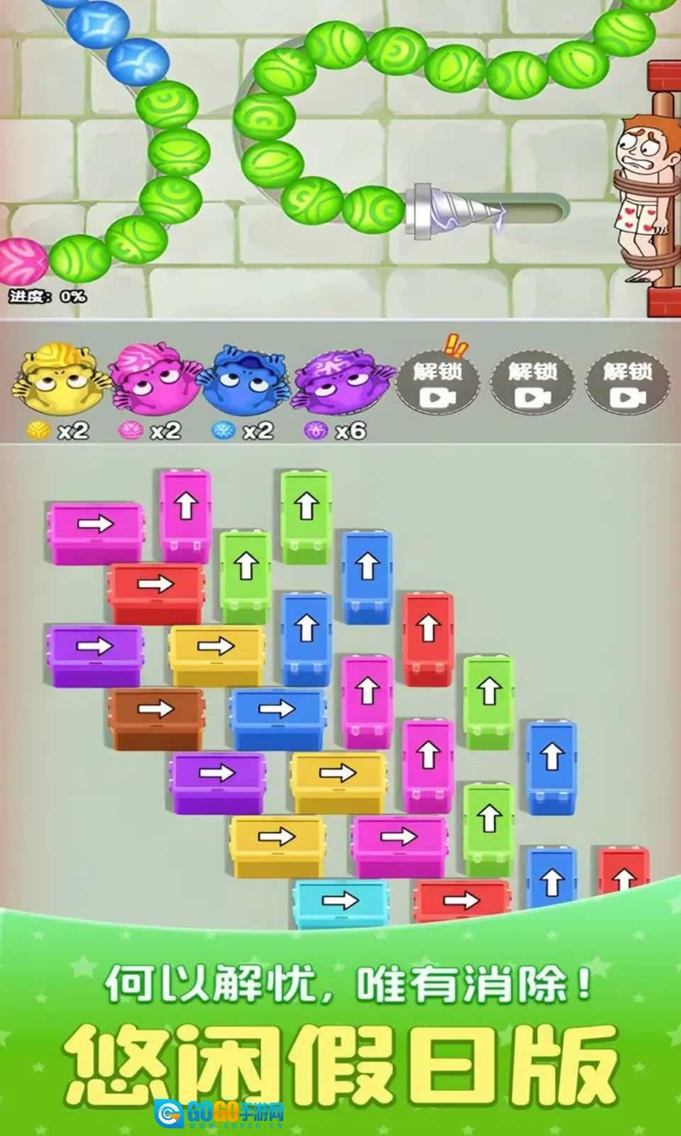 1、魔性消除玩法,滑动色块收集物资,搭建各种奇趣独特的防御炮台。