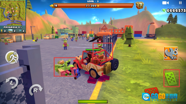 2、进入野外场景后,通过操控左右转向按钮来驾驶车辆,同时搭配使用油门和刹车键;当发现武器道具时,要驾驶车辆靠近并拾取,这样武装好车辆就能更好地对抗僵尸了。