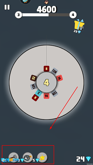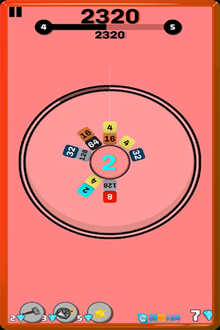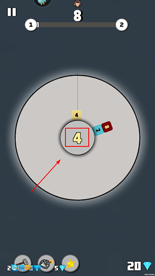 3、转盘中央显示的数字,和从上方落下的数字是相同的,要留意数字的变动来制定合成策略。