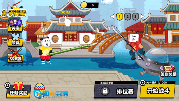 在魔性世界里展开对决的《射手荣耀》,让你操控熊猫头与三国英雄展开扔枪较量。你需要上下移动躲避飞来的标枪,滑动屏幕投掷反击;还能收集数十位英雄和上百种装备,每一关都有不同对手,依靠武器道具与角色实力通关获取金币。简单操作中融合了竞技趣味,带你体验物理模拟标枪对战的欢乐,开启这场魔性十足的扔枪冒险。