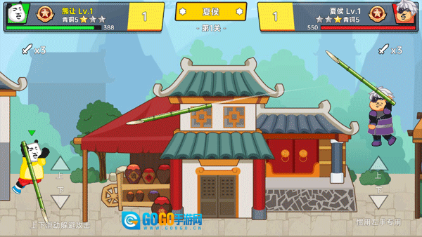 1、在主界面点击“开始战斗”,选择英雄后进入关卡;通过上下滑动屏幕来控制角色走位,躲避飞来的标枪;随后滑动屏幕投掷武器攻击对手,当对手血量清零时即可获得胜利。
