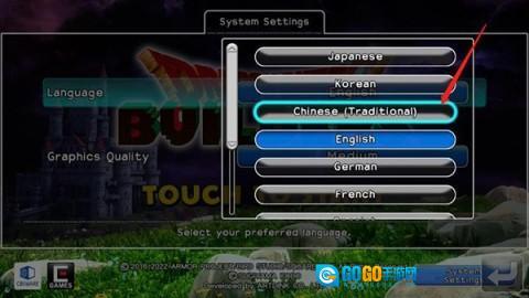 1、安装游戏完成后,首次打开会呈现英文界面,此时点击右下角的“设置”图标即可进行语言切换;