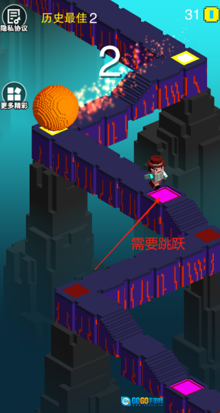 2、操作简单易上手,只需滑动屏幕就能控制角色转向、跳跃,不过反应速度关乎生死。