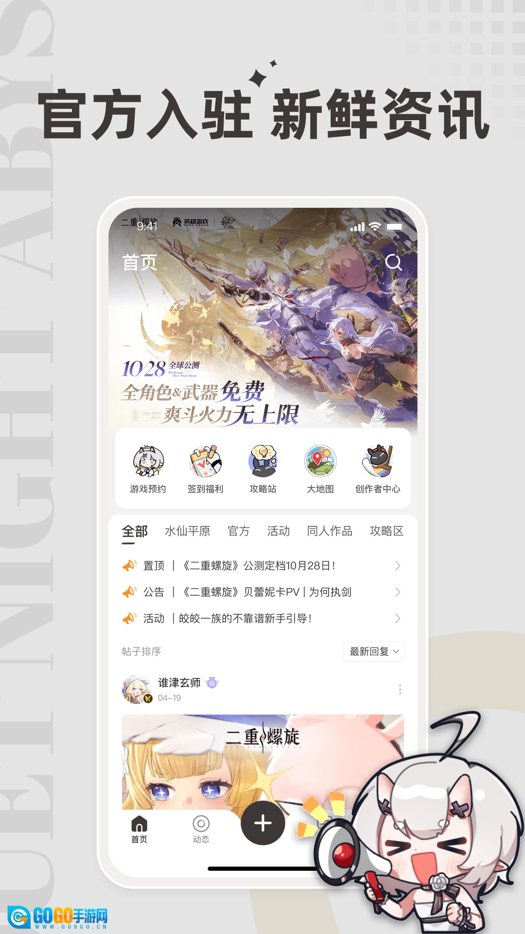 1、专为二重螺旋核心玩家打造,可获取资讯、攻略,寻找队友组队,还能反馈建议。