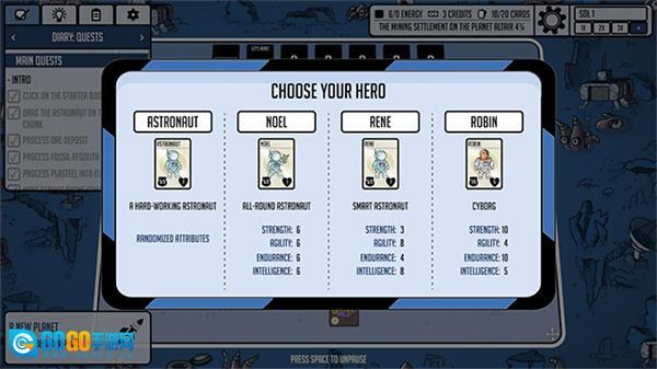3、宇航员/定居者具备如下属性:力量、敏捷、耐力、智力