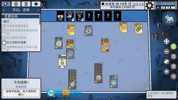 5、每天结束前都要完成充能,保证生存资源储备充足,这样才能让第二天的冒险顺利推进。