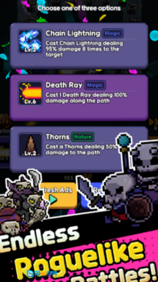 3. 每次战胜怪物都能获取经验值来提升角色等级,同时会从随机出现的三个能力加成选项里挑选一个,以此强化自身的战斗风格。