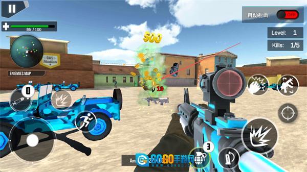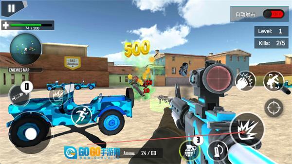 1、借助左侧的虚拟摇杆来操控移动方向,右侧的按键负责瞄准与射击,运用枪械对准敌方目标,通过精准的射击动作来歼灭敌人。