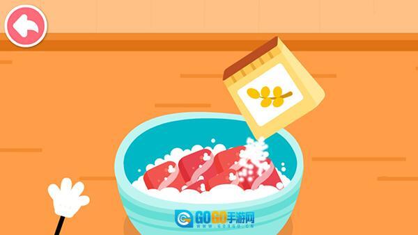 4、开始做菜后,小厨具会自动开火,宝宝只需把调料和食材倒进去就行。