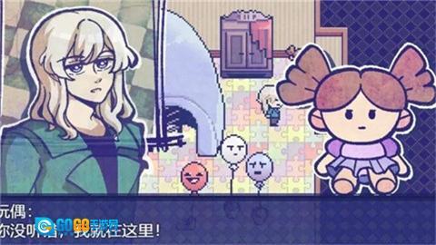 1、像素风暗黑美学:手绘场景结合暗色调光影,锈迹斑斑的滑梯、阴森的相框房等细节,进一步烘托出压抑的氛围。 2、高自由度互动体验:通过与角色对话逐步挖掘线索,物品组合可触发新的线索,例如将气球与兔子搭配,就能解锁隐藏路径。