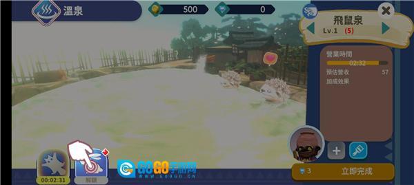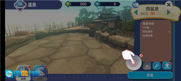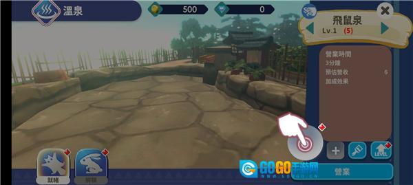 2、游戏的核心玩法是经营多个温泉,我们首先着手建设第一个温泉,点击该温泉即可开始;