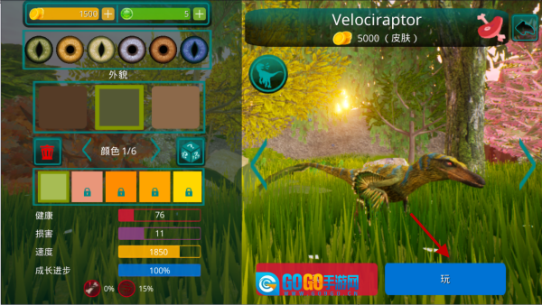 1、进入游戏后,先创建一个富有个性的恐龙角色,接着点击“玩”按钮,就能正式开启游戏之旅。