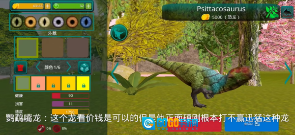4、鹦鹉嘴龙:从价格方面来看,这款龙的性价比还算不错,但要是让它正面直接对抗迅猛龙这类恐龙,是完全打不过的。