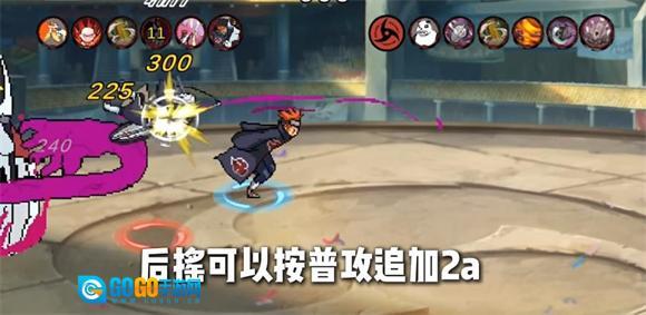 1、作为采用新引擎打造的首个忍者角色,疾风传佐助的机制相对简洁,其普攻共有五段:1a为拳击,2a是顶击并抽刀后撤,3a是位移加斩击,4a是飞踢,5a则会施展火遁。